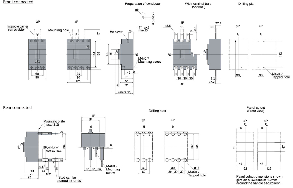 | Вид подключения главной электрич. цепи | Подключение спереди |