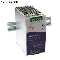 WDR-240-24 MEAN WELL — промышленный AC-DC источник питания 24 В для монтажа на DIN-рейку, предназначенный для питания промышленных контроллеров, реле, датчиков и телекоммуникационного оборудования.