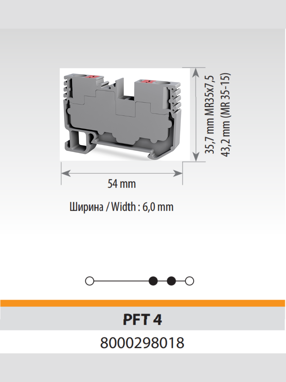 8000298018 Клеммник на DIN-рейку (Push-in) 4 мм² (серый); PFT 4; уп. 100шт.