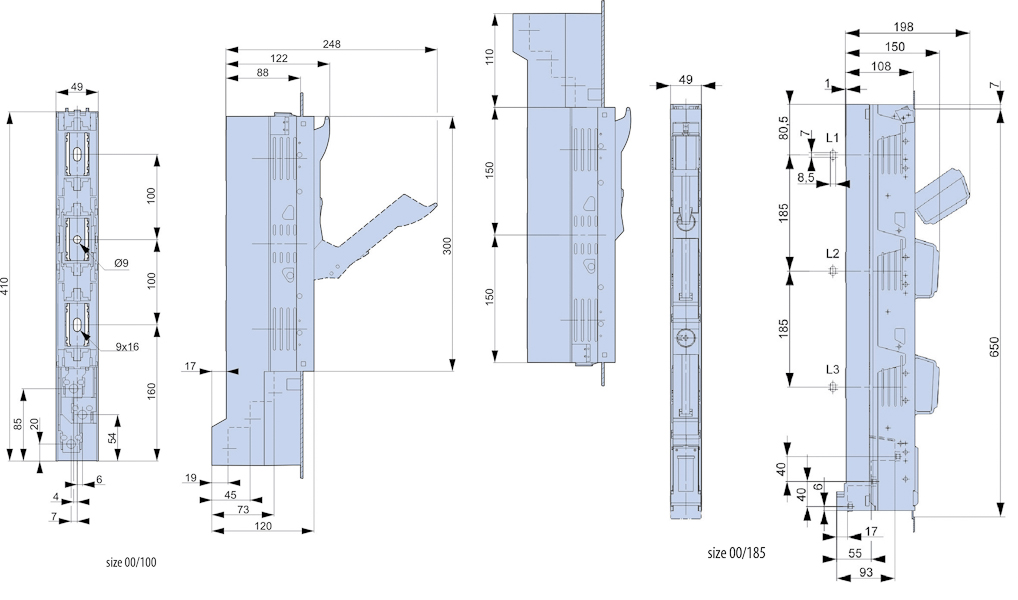 Разъединитель SL3 1P 630A (Клеммы M12-M12, 3 ручки, 690V AC, 185мм)