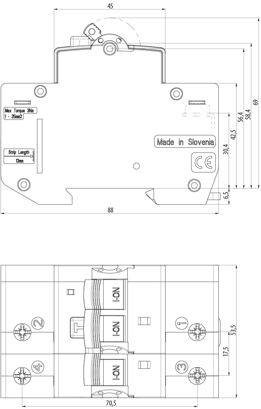 Диффер. автоматический выкл. KZS-AFDD 3M2p C 32/0,03 тип A (10kA, с защитой от дугов. замык.)