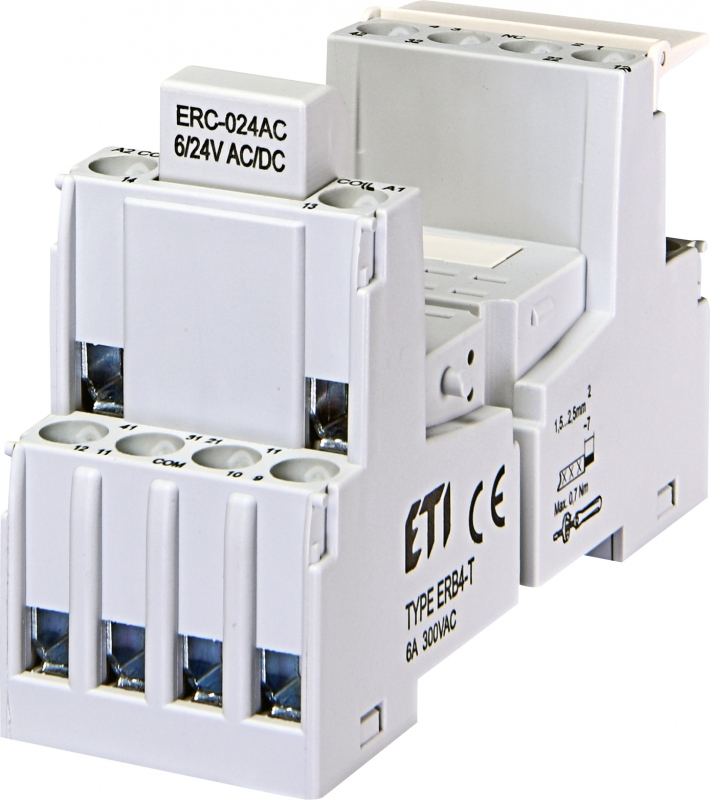 Артикул 002473014 — это четырехполюсная розетка (цоколь) ERB4-T от компании ETI. Она предназначена для установки промежуточных реле серии ERM4 (которые имеют 4 перекидных контакта).