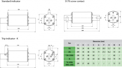Предохранитель NH-3L_K gPV 315A 1100V DC (L/R=5ms, с бойком)