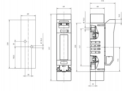 Держатель TL1-1/9/1000V/PV 1P (160А DC 1000V)